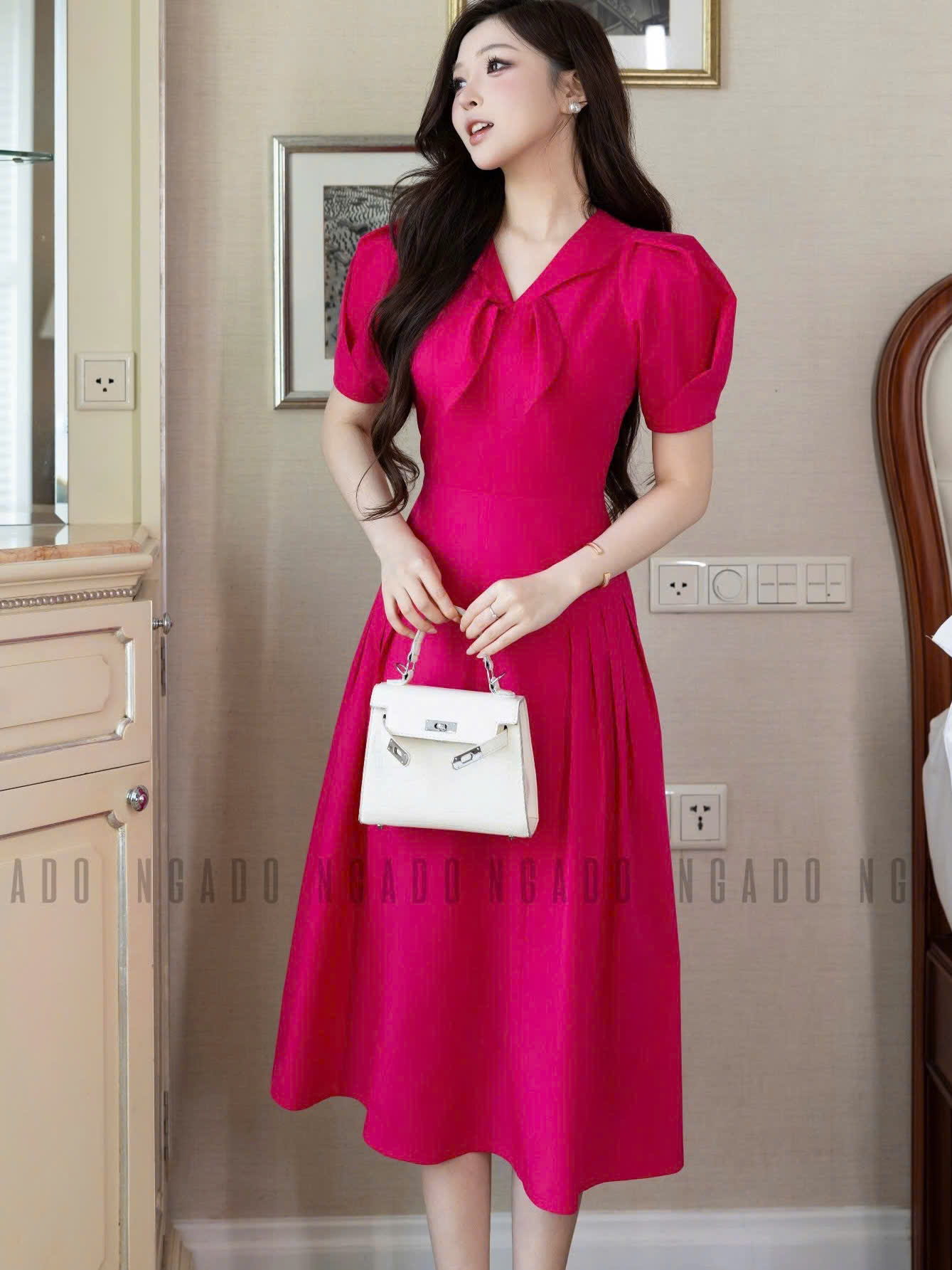 ✨Đầm hồng sen tay phồng NGADO , đầm thiết kế Nữ , đầm công sở , dự tiệc