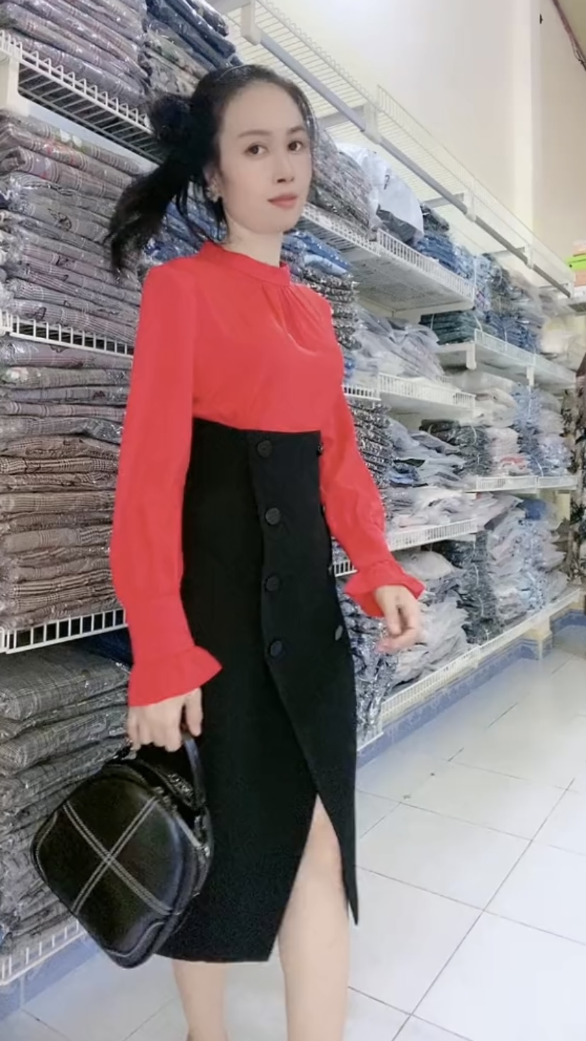 Đầm xẻ tay kèn cao cấp trang nhã Mã: DZBS001 Màu: Đen + Đỏ Chất liệu: Acetate Số đo vòng1/vòng2(cm): 88/72