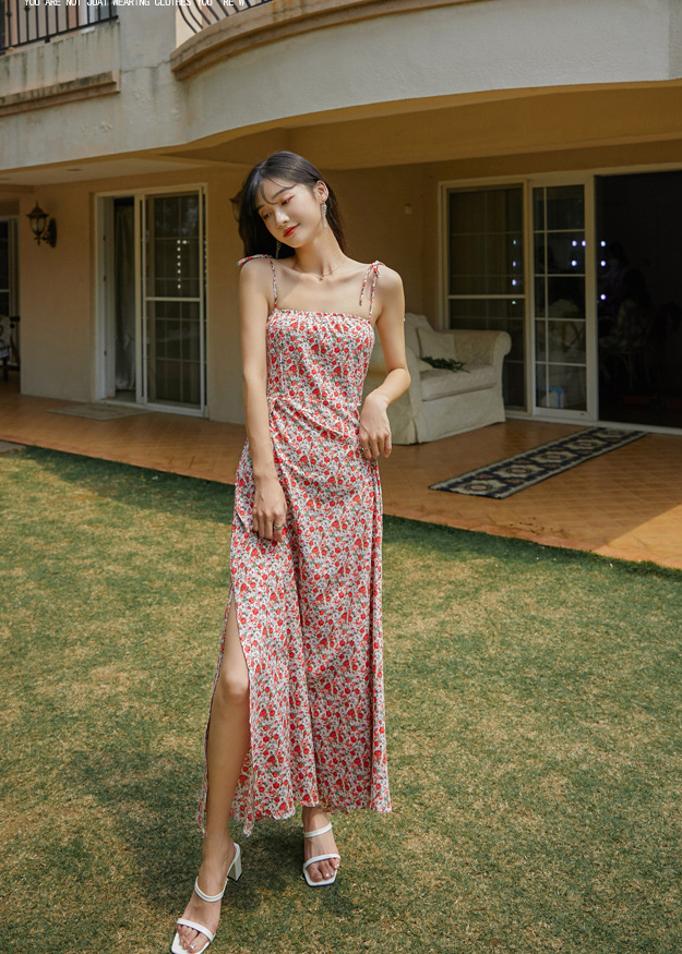 ✨Đầm maxi xẻ tà dàng dài, họa tiết hoa nhí màu đẹp, chất voan tơ cao cấp, váy 2 kiểu mặc: 2 dây và vai trần | MX056