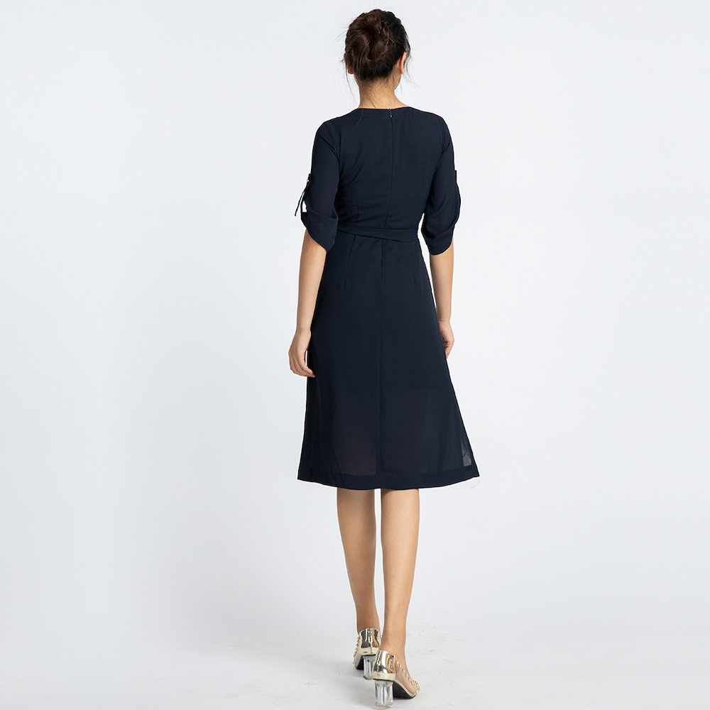 - Chọn độ dài cho đầm Midi: chiều dài của đầm Midi thường qua gối nên dễ dàng tạo nên cảm giác thân hình dài hơn, thon thả hơn. Nếu có dáng người thấp, nàng chọn chiều dài đầm Midi vừa qua gối hoặc qua hẳn bắp chân nhé. Nếu dài đến giữa bắp chân là nhìn dễ bị thấp người.