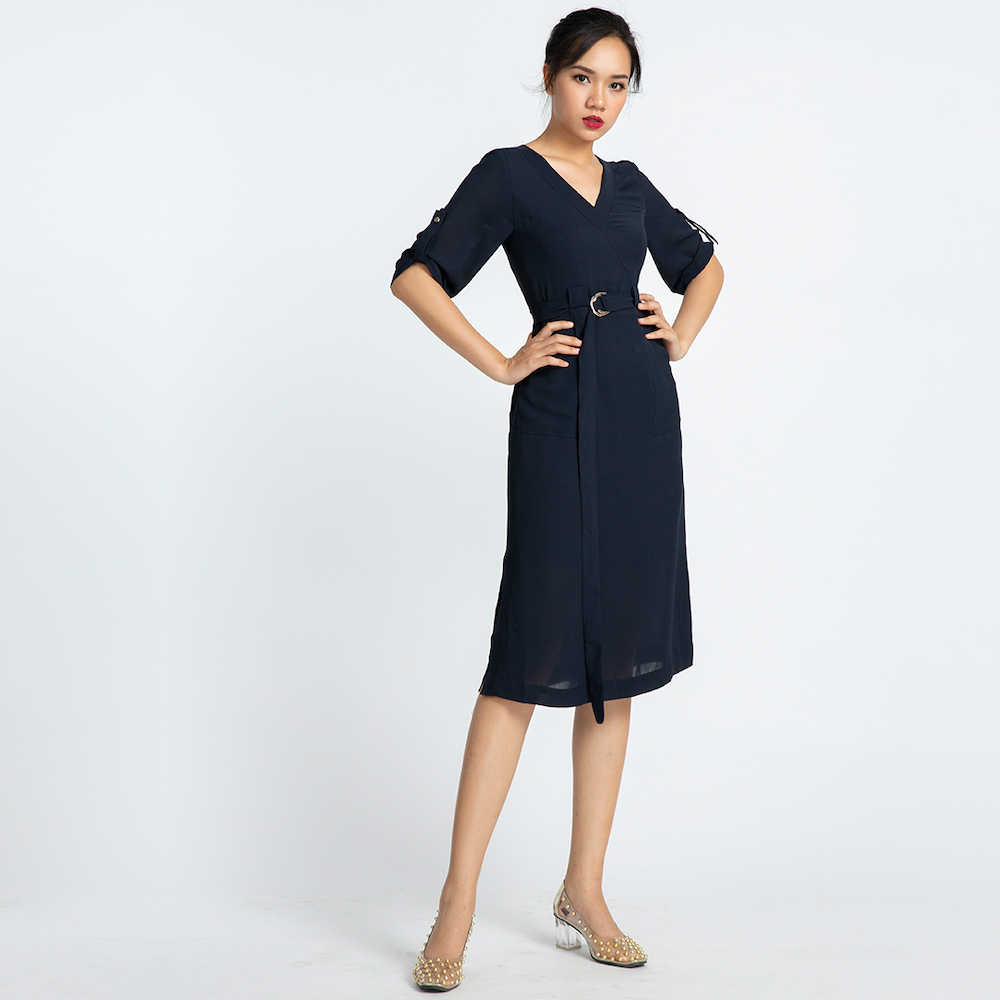 ✨Đầm Công Sở Nữ Đẹp Đầm Midi Thắt Eo Thời trang thiết kế Hity DRE097 (Xanh Cổ Điển)