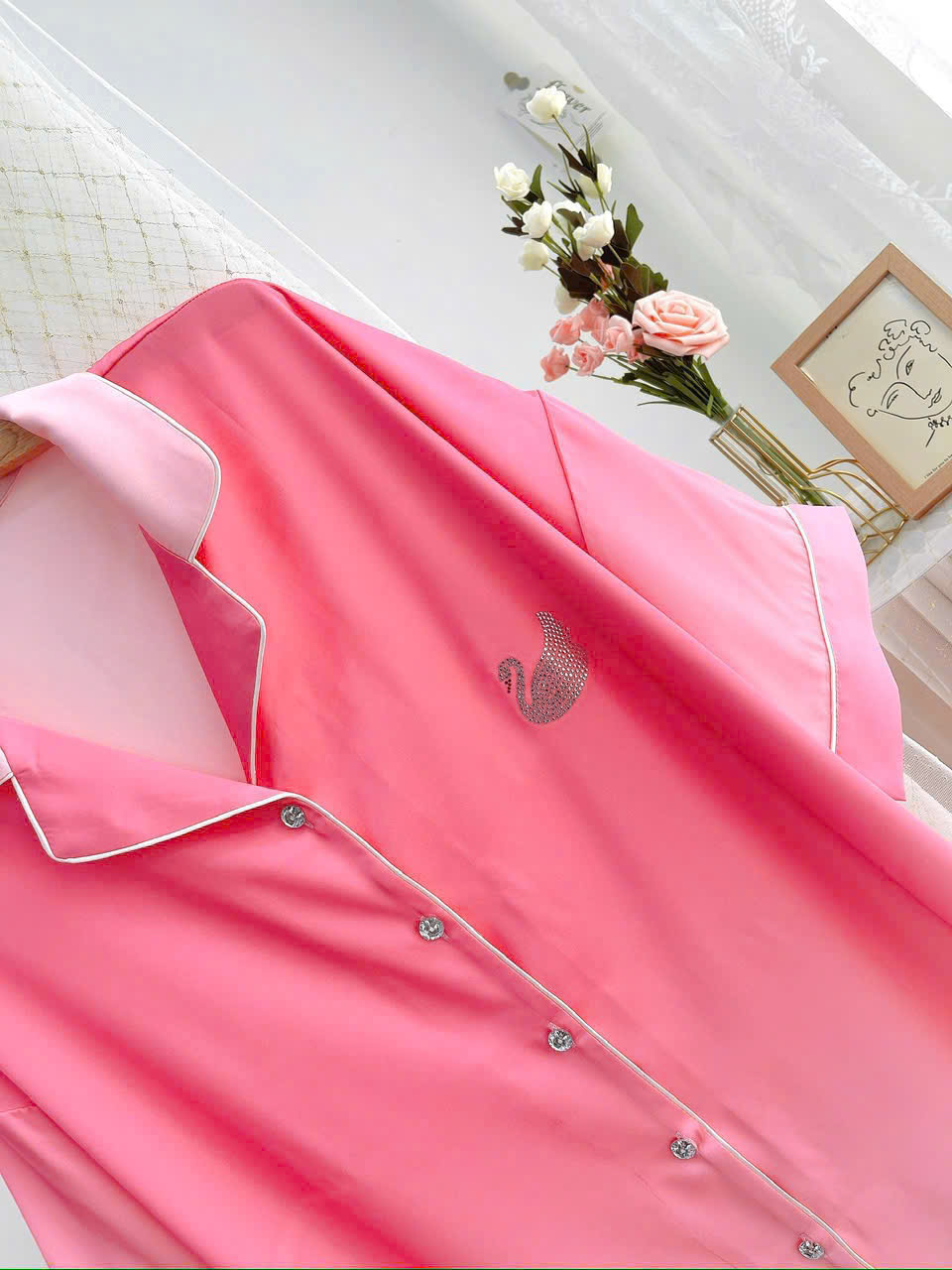 ✨Đầm Sơmi D802 Lụa Quảng Châu Cao Cấp Đính Đá Thiên Nga Xinh Xắn