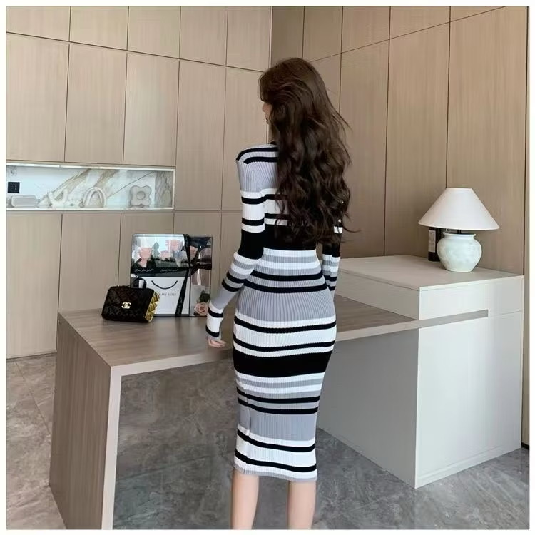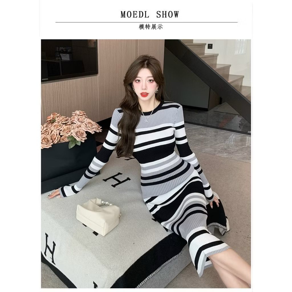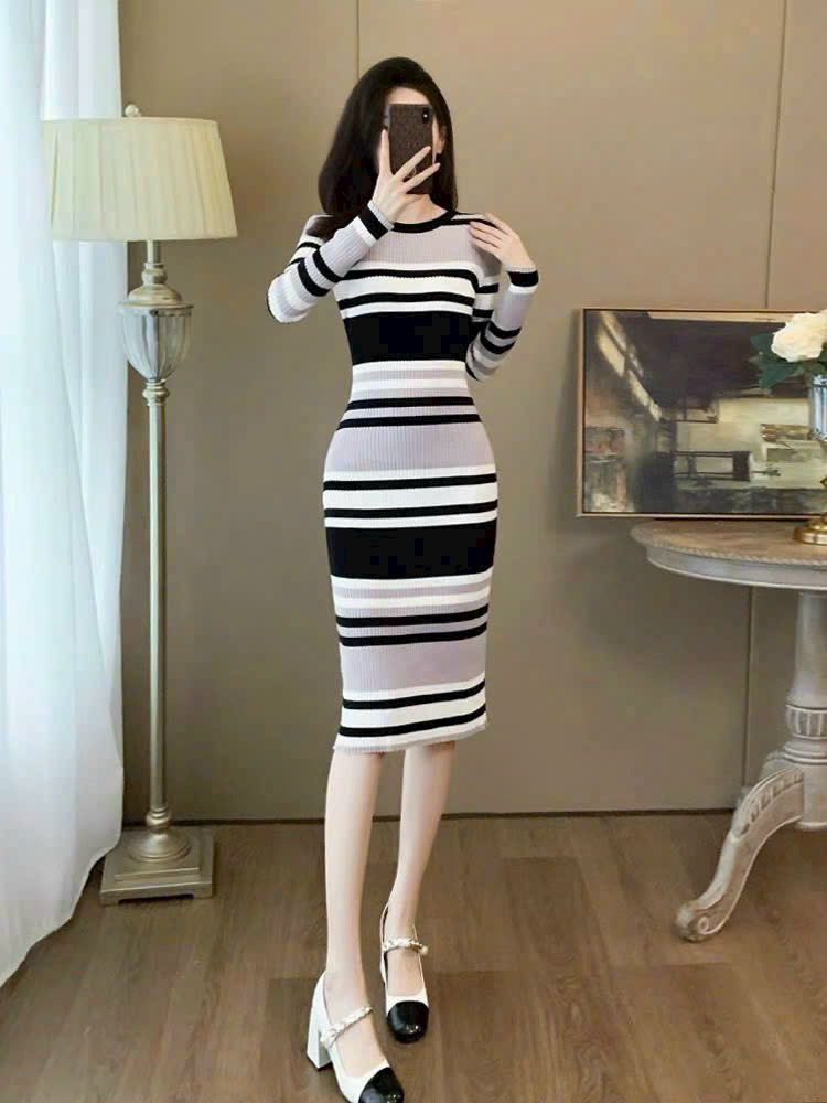 Váy body len dài kẻ sọc – item không thể thiếu cho nàng thích phong cách nữ tính, quyến rũ và thời thượng. Chất liệu: Len mềm, co giãn tốt, thoải mái vận động.