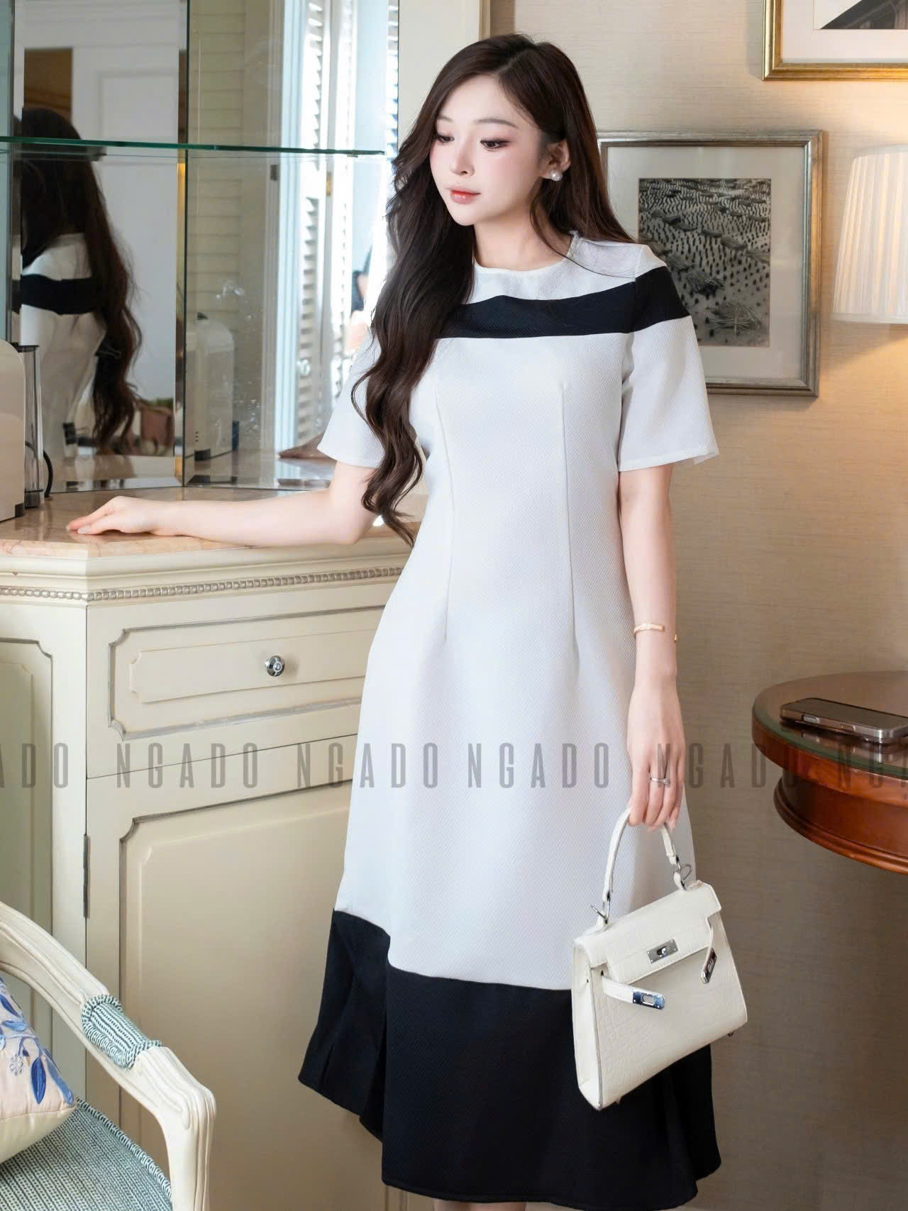 ღ THÔNG TIN SẢN PHẨM: Tên sản phẩm: Đầm đuôi cá đen phối trắng Chất liệu: Chất gân ý Chi tiết sản phẩm: có lót áo không lót tùng váy, không túi