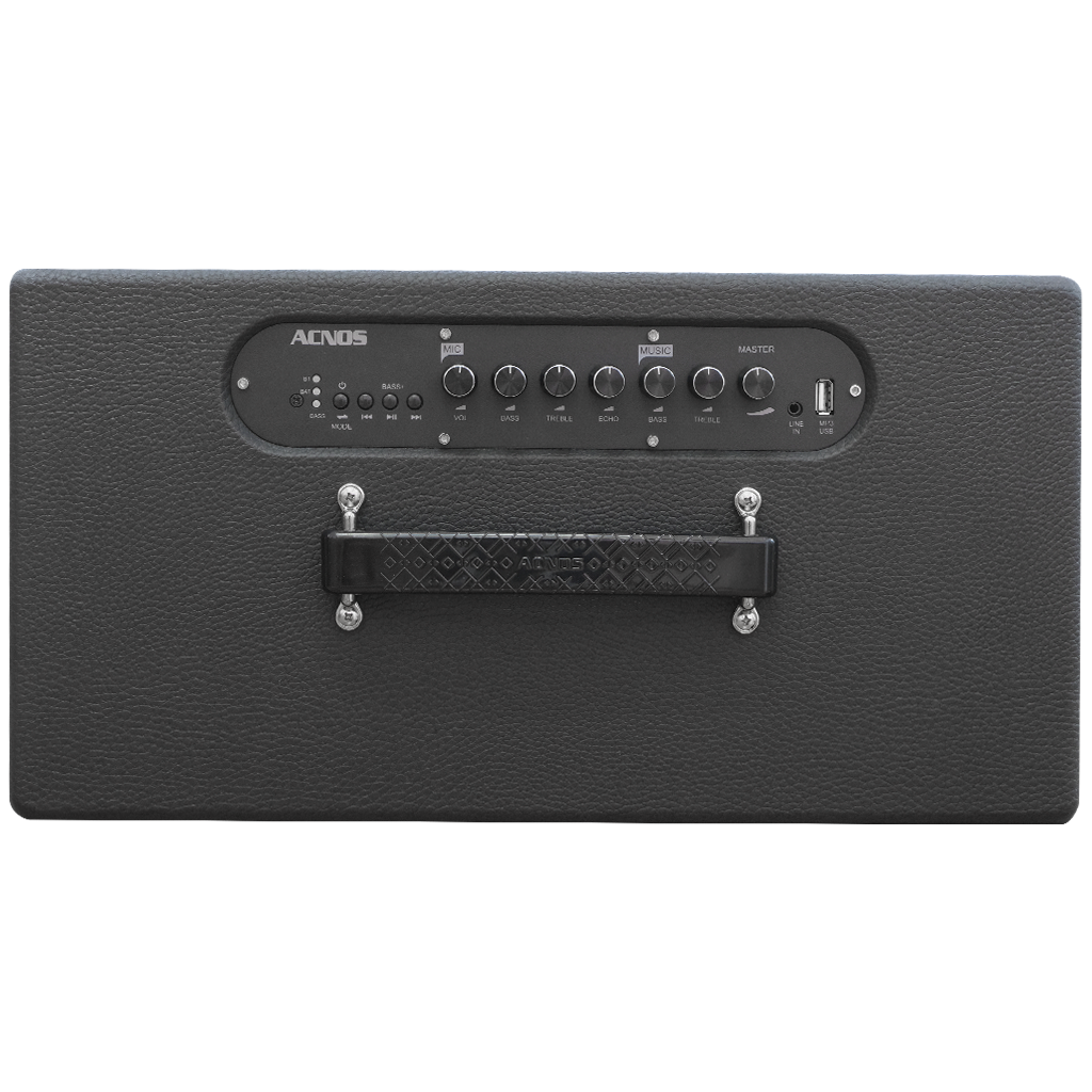 Dàn âm thanh di động xách tay ACNOS CS201PU, Loa karaoke di động xách tay ACNOS CS201PU ĐẶC ĐIỂM NỔI BẬT - Tích hợp bộ nâng tiếng nghe nhạc hay hơn - Chống hú di tần không làm giảm chất lượng âm thanh - Hiệu ứng Reverb đa kênh độc quyền giúp tiếng hát mượt mà - Tích hợp vang số chỉnh cơ - Chức năng boost bass dành riêng cho nhạc sàn sôi động - MWS - Nối cặp không dây 2 loa thành 1 để nghe nhạc Stereo & hát karaoke THÔNG SỐ KĨ THUẬT - Màu sắc : Màu đen - Thùng gỗ bọc da - Màu lưới : lưới xám - Logo : KBEATBOX - Bluetooth 5.0 - Nguồn cấp : Adapter 17.5VDC-3A max - Input : 110~240VAC, 50~60Hz (auto volt) - Pin Li-Ion : 15V – 2.2AH (33WH) - Hệ thống loa : loa BASS 20CM (8") + loa TREBLE - Công suất RMS : 70W (max)