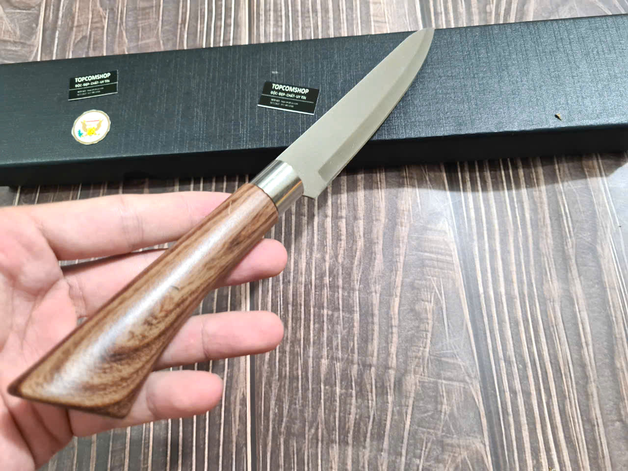 Cán dao làm từ gỗ c ẩmlai sang trọng, tay cầm cong