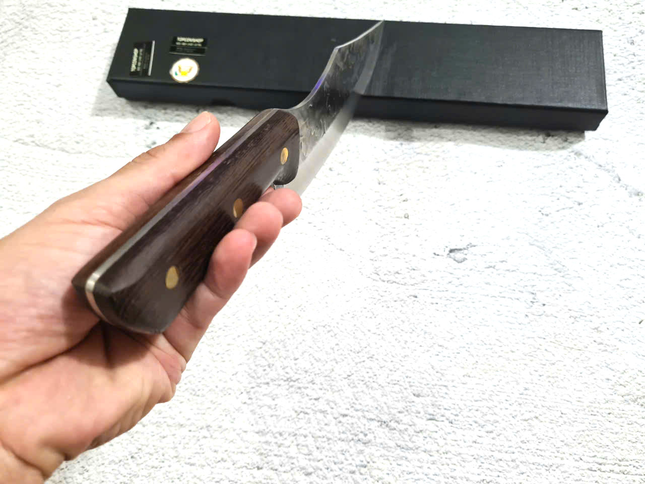 -THÔNG TIN SẢN PHẨM: Chiều dài tổng thể: 29.5cm, Chiều dài lưỡi: 19.5cm ,Chiều rộng lưỡi: 5cm Độ dày: 2.5MM, CHẤT liệu lưỡi: 5Cr15MOV (thép 5 crom 15 molypden vanadi) Chất liệu CÁN: gỗ Cánh gà NẶNG : 2.5 lạng Mặt D dập chìm hoa văn rất đẹp