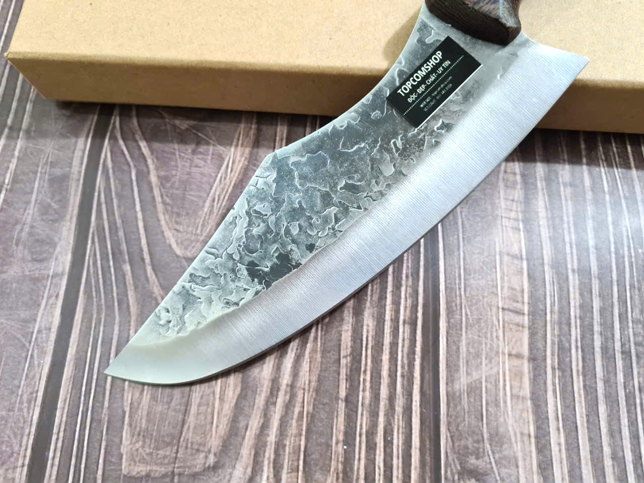 -THÔNG TIN SẢN PHẨM: Chiều dài tổng thể: 29.5cm, Chiều dài lưỡi: 19.5cm ,Chiều rộng lưỡi: 5cm Độ dày: 2.5MM, CHẤT liệu lưỡi: 5Cr15MOV (thép 5 crom 15 molypden vanadi) Chất liệu CÁN: gỗ Cánh gà NẶNG : 2.5 lạng Mặt D dập chìm hoa văn rất đẹp