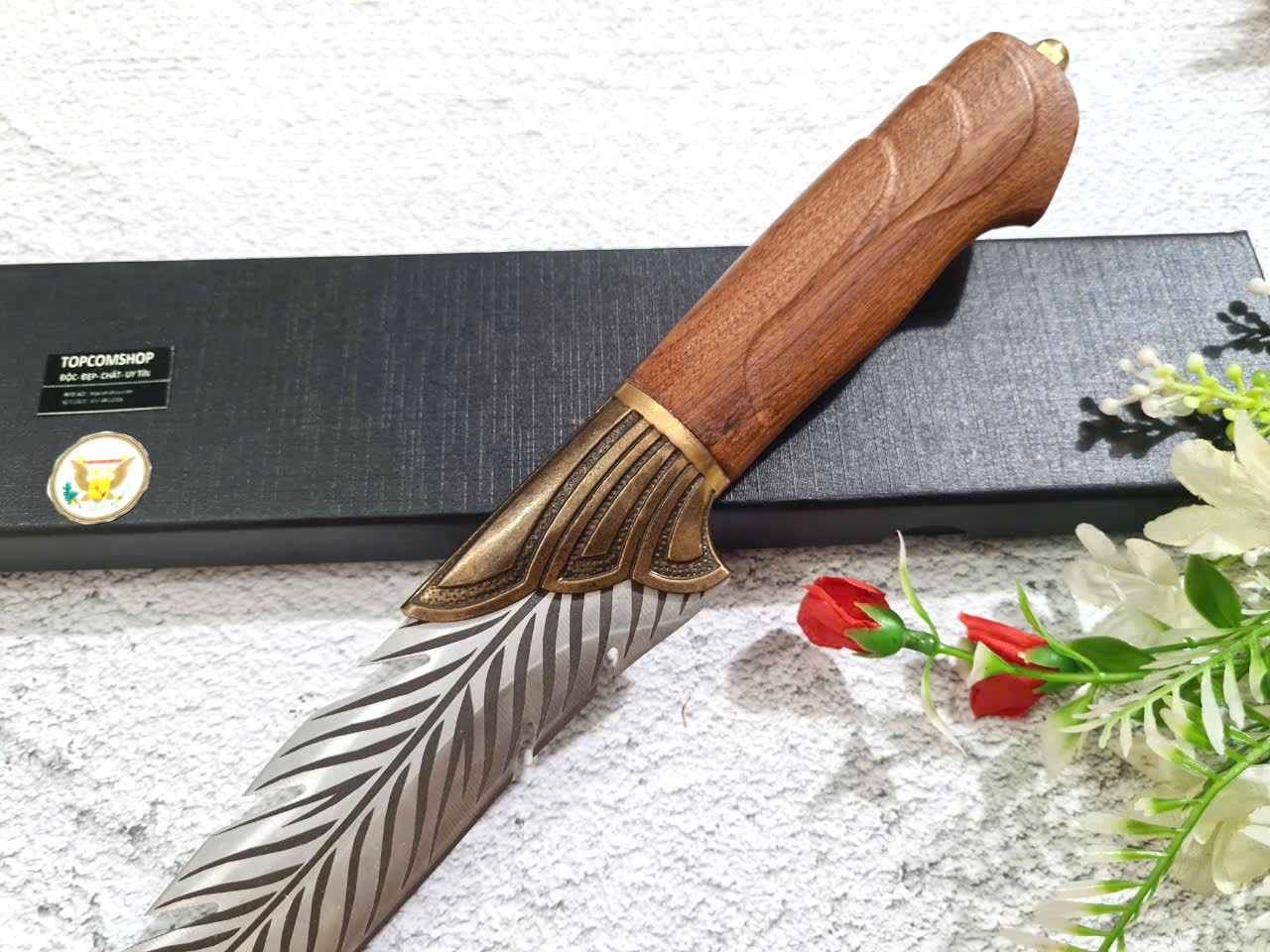 Dao Phúc Sen Dao Bầu 22 Cán Cẩm Khâu Đồng G10D - Kích thước: lưỡi: 20-22cm, cán: 13cm, rộng: 7,5cm, dầy: 1,5ly, trọng lượng: 300g - Chức năng: sử dụng chuyên thái lọc thịt ,cá,