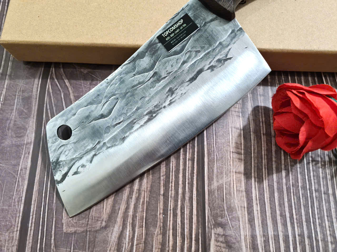 TỔNG DÀI : 30cm, LƯỠI: 17.5cm,RỘNG : 7cm, dày: 2.5mm, CHẤT liệu lưỡi: 5Cr15MOV (thép 5 crom 15 molypden vanadi) Chất liệu CÁN: gỗ Cánh gà, NẶNG : 3 lạng
