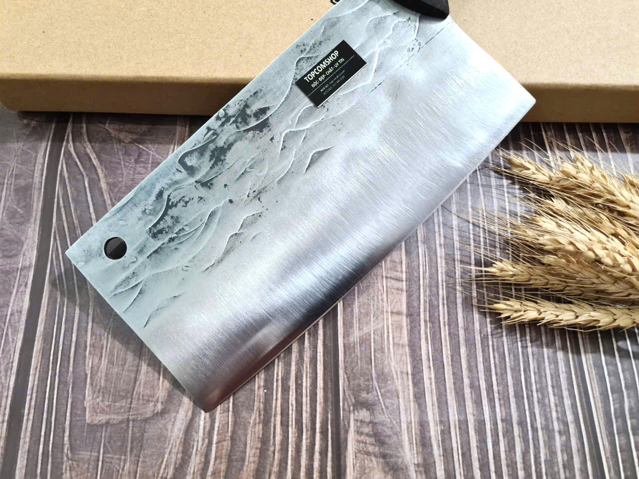 THÔNG TIN SẢN PHẨM ều dài TỔNG: 32cm Chiều dài lưỡi: 20cm Chiều rộng lưỡi: 12cm, Độ dày lưỡi: 2.5mm Trọng lượng: 4.5 lạng chất liệu lưỡi : 5Cr15MOV (thép 5 crom 15 molypden vanadi) Chất liệu tay cầm: gỗ cánh gà