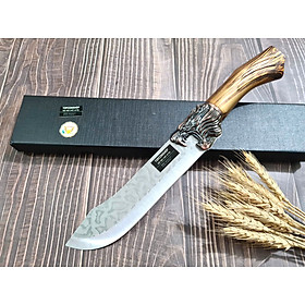 D SỐ 4 : TỔNG DÀI : 32cm, LƯỠI: 18cm,RỘNG : 4.5cm, dày: 3mm, NẶNG : 2.3 lạng, CHẤT liệu lưỡi: 4Cr13MOV (thép 4 crom 13 molypden vanadi).Chất liệu CÁN: nhựa abs xịn . khâu đầu rồng và chuôi bằng thép 4cr13
