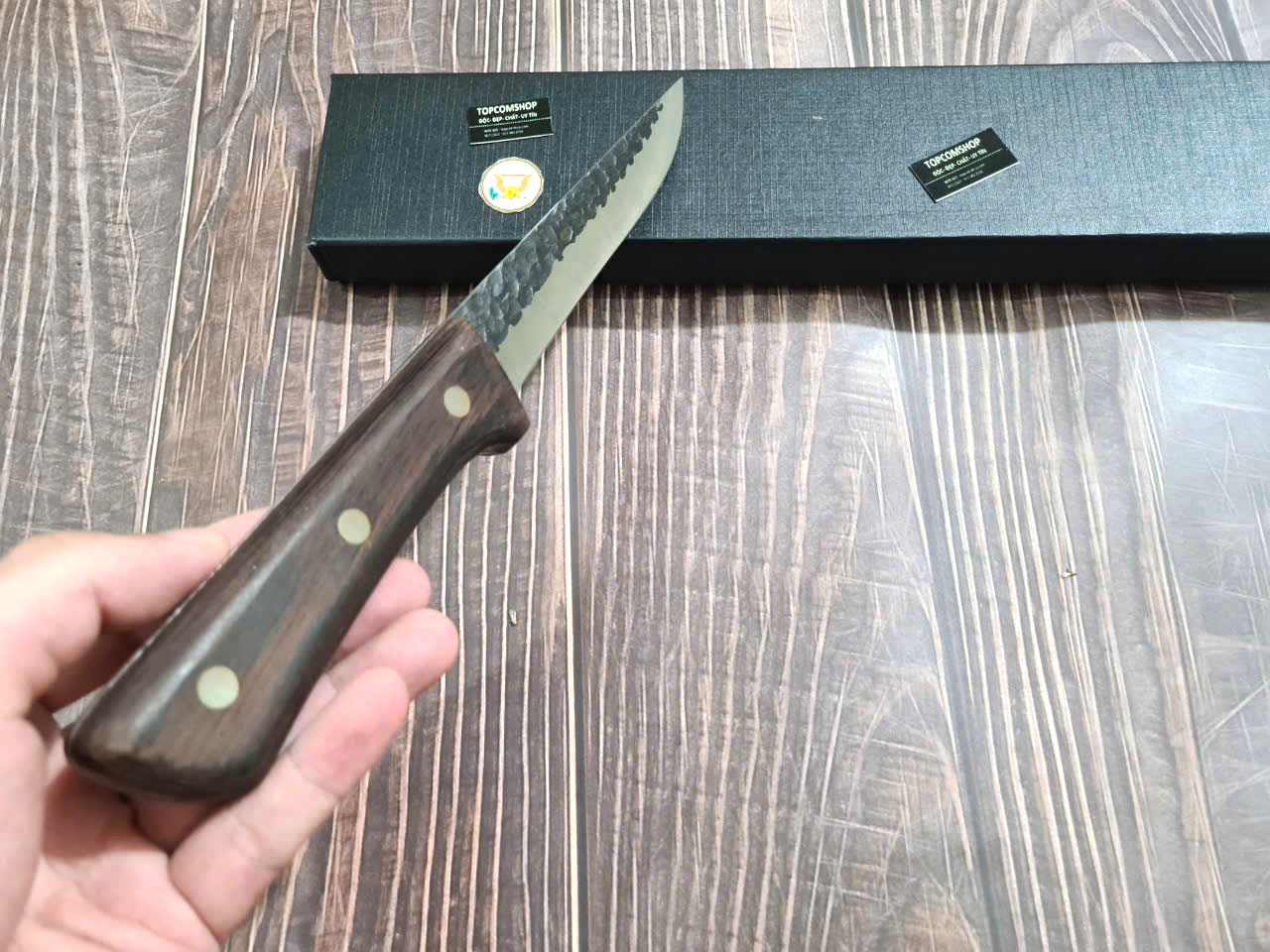 D SỐ 1 : TỔNG DÀI : 27cm, LƯỠI: 14cm,RỘNG : 2.3cm, dày: 2.5mm, CHẤT liệu lưỡi: 5Cr15MOV (thép 5 crom 15 molypden vanadi).Chất liệu CÁN: gỗ Cánh gà,.NẶNG : 1.5 lạng