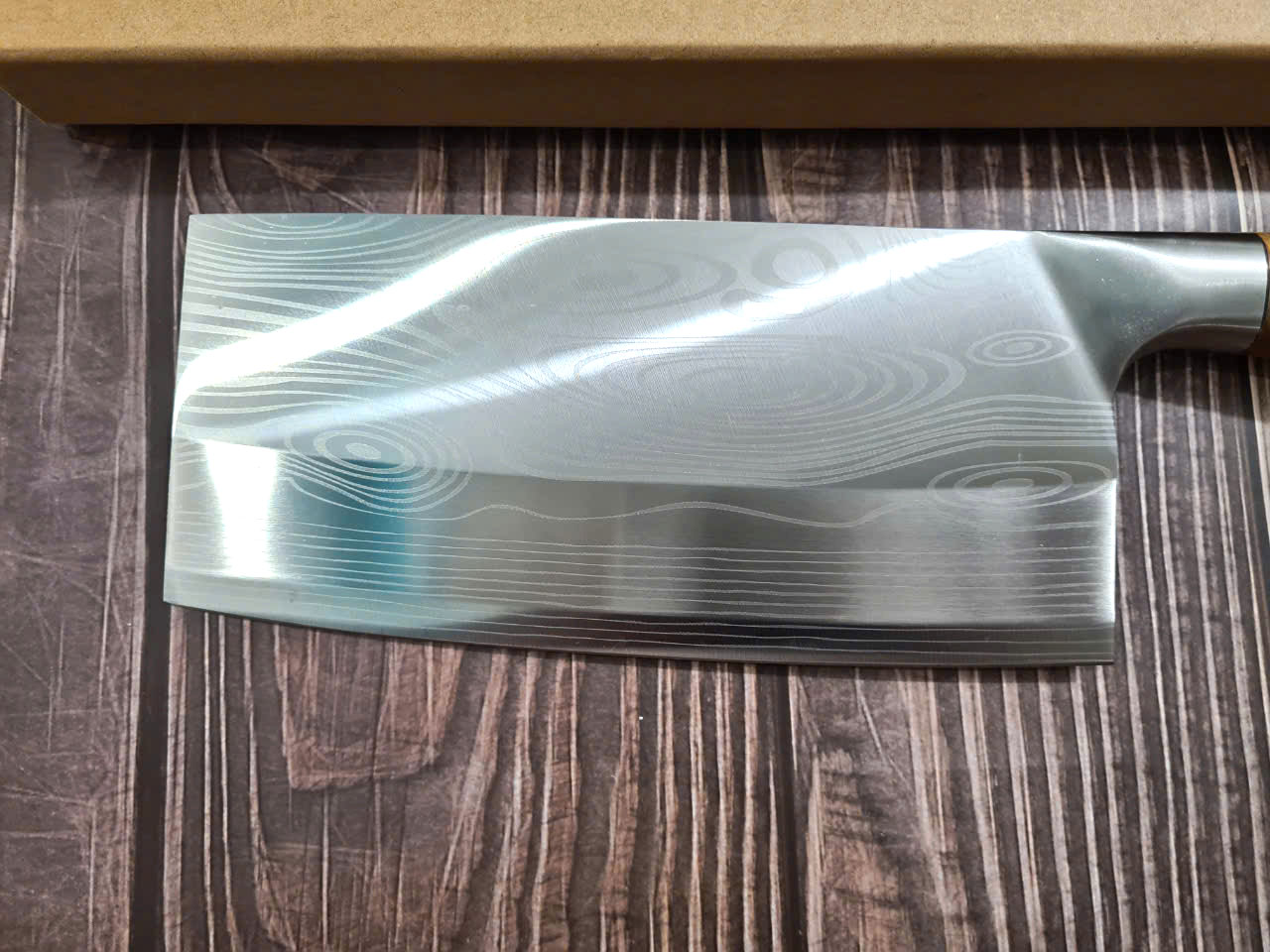 - Chức năng: Chặt xương ống, chân giò, trâu bò - Kích thước: Lưỡi: 22cm, cán: 10cm, rộng: 10cm, dầy: 5ly, trọng lượng: 800g - Cán : Gỗ mun, Khâu đồng đỏ , chốt đinh
