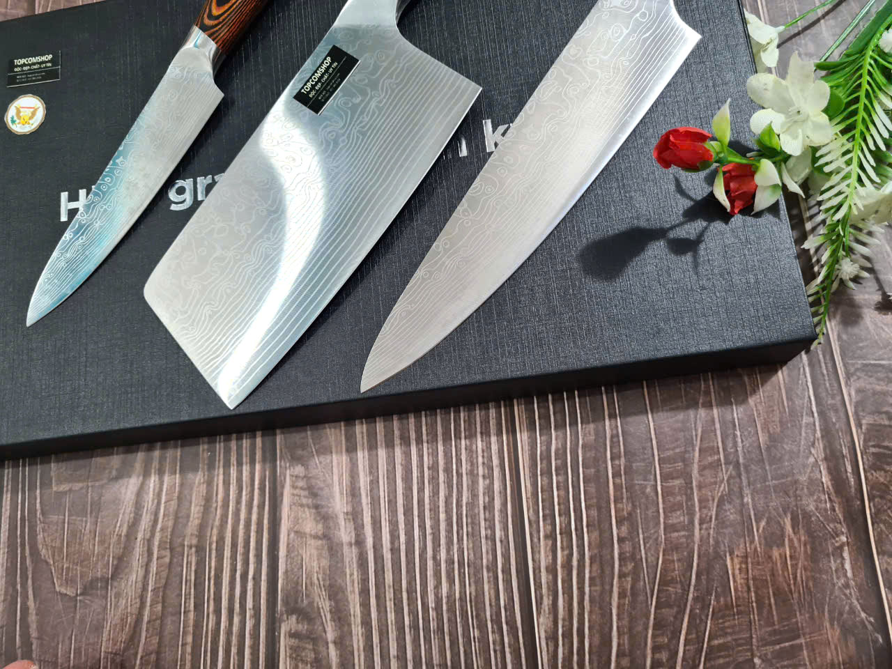 ✨DAO - BỘ 3 DAO BẾP NHẬT BẢN THÉP DAMASCUS MÃ A4 DT2 nt topcomshop vn