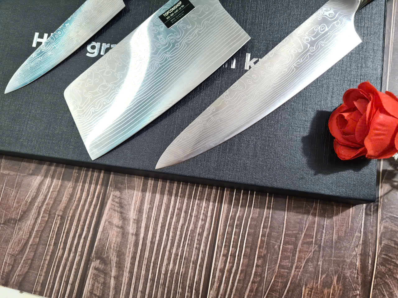 ✨DAO - BỘ 3 DAO BẾP NHẬT BẢN THÉP DAMASCUS MÃ A5 DT2 nt topcomshop vn