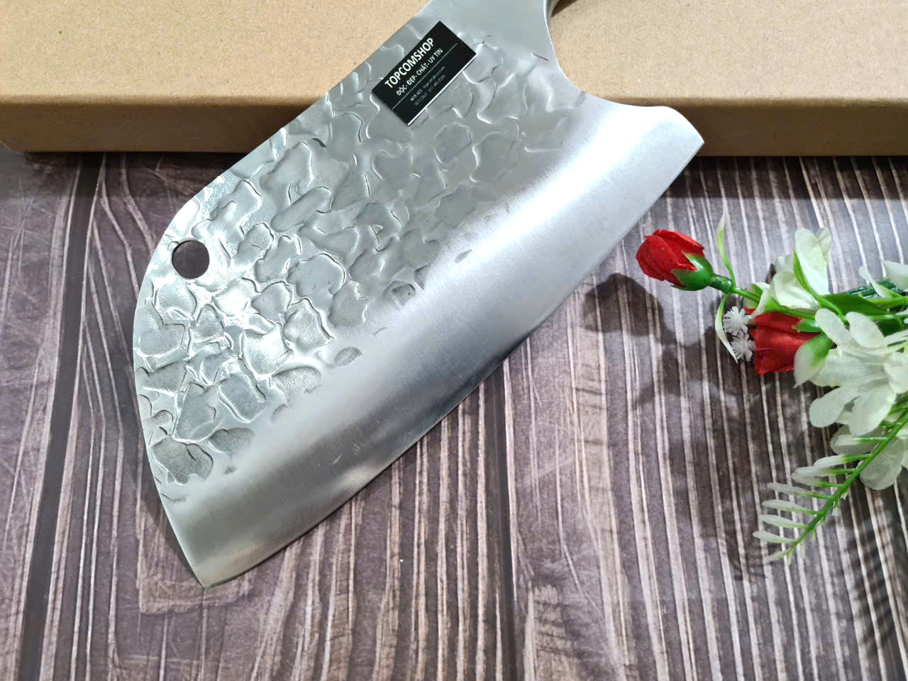 #- Chức năng: Chặt xương ống, chân giò,xương bò - Kích thước: Lưỡi: 24cm, cán: 12cm, rộng: 9,5cm, dầy: 4ly,trọng lượng: 800g