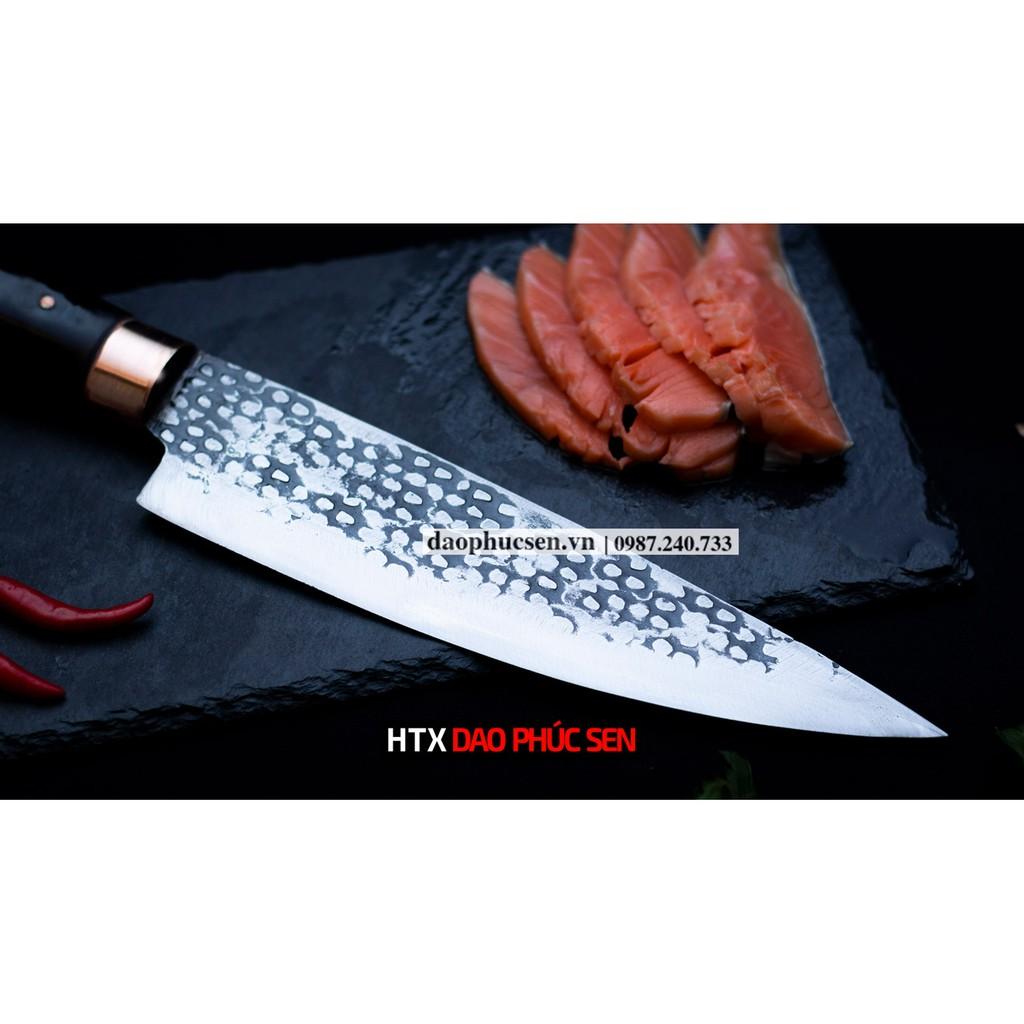 Dao Phúc Sen bản Takohiki - Kích thước: lưỡi: 24cm, cán: 12cm, rộng: 3.5cm, dầy: 2.5 ly, trọng lượng: 200g - Chức năng: sử dụng chuyên thái thịt ,cá, rau củ và các thực phẩm