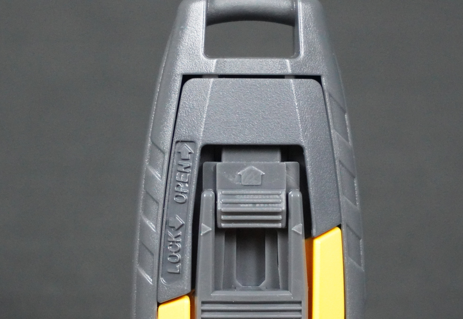 Dao rọc giấy an toàn "Safety Master" có tay cầm làm bằng nhựa ABS màu vàng, có những đường vân giúp hạn chế tình trạng trơn trượt.