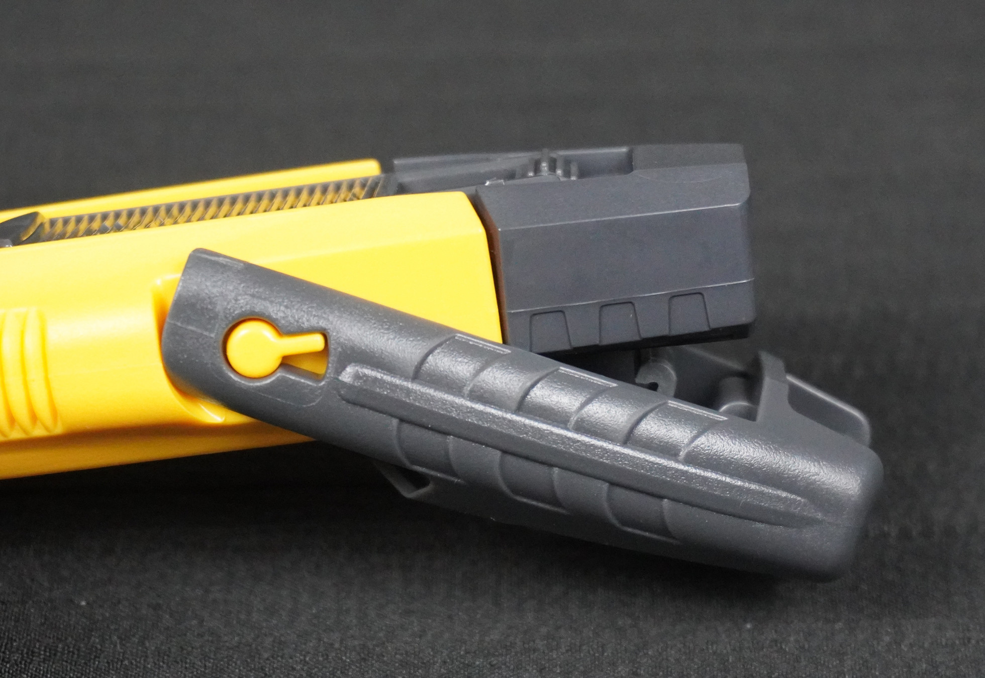 Ngoài ra, dao rọc giấy an toàn còn có cơ chế khóa trượt giúp không kéo lưỡi dao ra được.