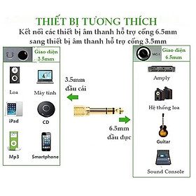 THÔNG SỐ KỸ THUẬT: - Đầu Jack chuyển đổi âm thanh từ cổng 3ly sang 6ly được làm bằng chất liệu siêu bền, siêu chống rỉ với màu vàng ánh kim bắt mắt mạng đến