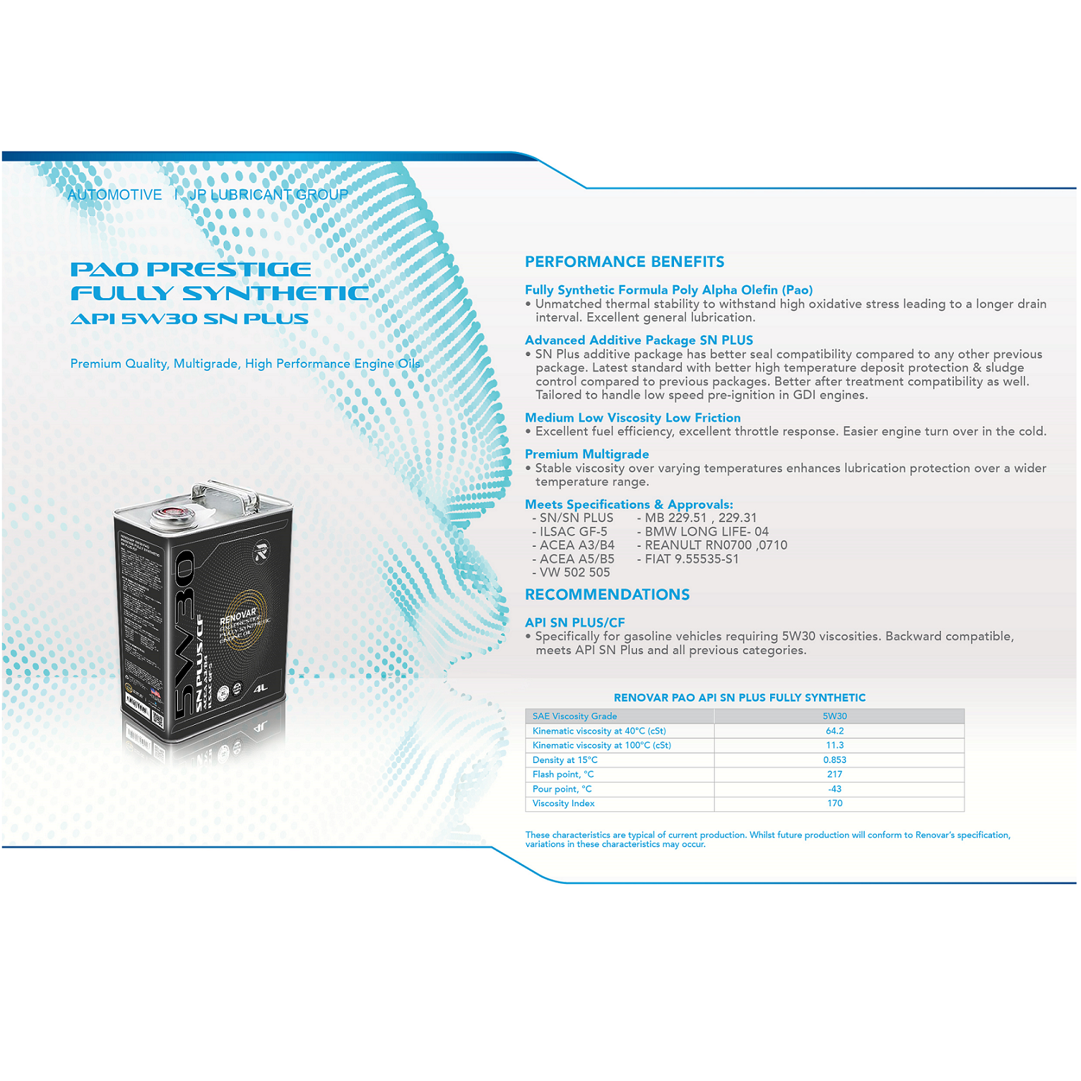 Dầu nhờn động cơ Renovar 5W30 SN Plus/CF (4x4L)Dầu nhờn động cơ Renovar 5W30 SN Plus/CF (4x4L)Dầu nhờn động cơ Renovar 5W30 SN Plus/CF (4x4L)