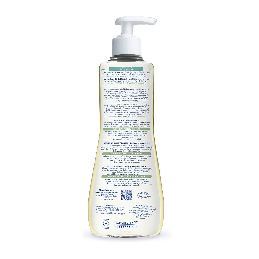 Dầu tắm gội Cho Trẻ Sơ Sinh & Em Bé Da Chàm Thể Tạng Mustela 500ml là dầu làm sạch đa năng, bổ sung dưỡng chất cho da mặt, tóc và cơ thể bé. Được thiết kế đặc biệt cho làn da cực kỳ khô chàm thể tạng (viêm da cơ địa), dầu làm sạch của Mustela bao bọc làn da khô và ngứa trong một hàng rào dưỡng ẩm mượt mà đồng thời cung cấp độ ẩm và làm dịu da.