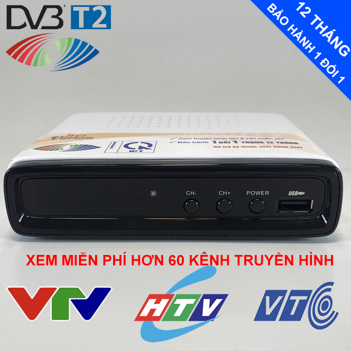 - x1 phiếu bảo hành LƯU Ý: Để xem được truyền hình bằng đầu thu DVB-T2 thì nhà bạn phải nằm trong vùng phủ , một bộ trong nhà (khu vực nhà cao tầng, độ thông thoáng tốt, gần trạm thu phát) hoặc ăng ten ngoài trời UHF đạt tiêu chuẩn kết nối với đầu thu bằng dây anten đồng trục. Ăng ten UHF là ăng ten có chấn tử ngắn sắp xếp gần nhau. Vì đầu thu DVB-T2 thu trên dải tần UHF nên muốn thu tốt sóng DVB-T2 thì bắt buộc phải sử dụng ăng ten UHF. Bạn vẫn có thể tận dụng anten đang sử dụng nếu nó còn tốt và nhà bạn gần trạm thu phát sóng