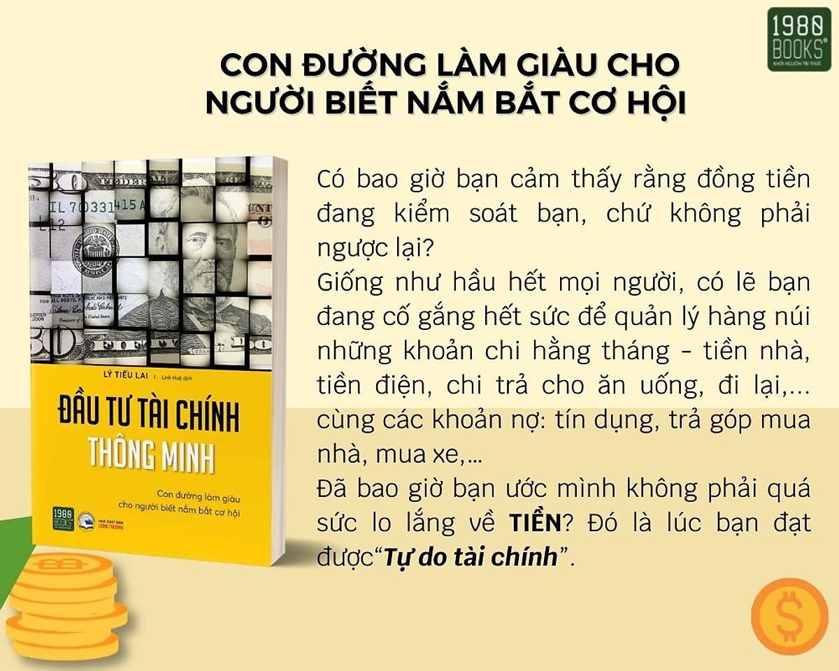 ĐẦU TƯ TÀI CHÍNH THÔNG MINH Có bao giờ bạn cảm thấy rằng đồng tiền đang kiểm soát bạn, chứ không phải ngược lại? Giống như hầu hết mọi người, có lẽ bạn đang cố gắng hết sức để quản lý hàng núi những khoản chi hằng tháng - tiền nhà, tiền điện, chi trả cho ăn uống, đi lại, cùng các khoản nợ: tín dụng, trả góp mua nhà, mua xe,…Đã bao giờ bạn ước mình không phải quá sức lo lắng về TIỀN? Đó là lúc bạn đạt được “Tự do tài chính”. Hiểu cơ bản thì tự do tài chính là trạng thái đạt được khi một cá nhân có đủ nguồn tài chính để đưa ra những quyết định trong cuộc sống mà không bị chi phối bởi cân nhắc tiền bạc. Để đạt được điều đó, chúng ta cần kiếm được tiền, kiếm được nhiều tiền. Vậy phải bắt đầu từ đâu? Làm như thế nào? Có bao nhiêu tiền là đủ? “Đầu tư tài chính thông minh” là cuốn sách sẽ cho bạn những chỉ dẫn chi tiết trong cuộc chơi giữa bạn và tiền, trong đó, bạn sẽ là người thắng cuộc và làm chủ. Cũng như máy tính, con người chúng ta cũng có “hệ điều hành”, Bạn đã từng tự nâng cấp “hệ điều hành” của mình chưa? Mỗi chúng ta đều có “hệ điều hành” của riêng mình, một người không ngừng nâng cấp “hệ điều hành”, không chỉ có thể mang lại cảm giác hài lòng cho mình mà còn ngày càng giúp chúng ta tối ưu hóa hướng đi của bản thân, đưa ra những quyết định và nổ lực hết sức thực hiện nó trên con đường đúng đắn đó. Cuốn sách này thảo luận về phương pháp luận, giúp bạn nhận biết rõ ràng “hệ điều hành” của mình, dùng kinh nghiệm cá nhân của tác giả dạy bạn cách làm thế nào để nâng cấp “hệ điều hành” của chính mình, và vận dụng nó để đạt được sự phát triển của bản thân từ đó tìm ra con đường làm giàu và nắm bắt những cơ hội mà cuộc sống mang đến, tiến tới mục tiêu tự do tài chính trong tương lai.