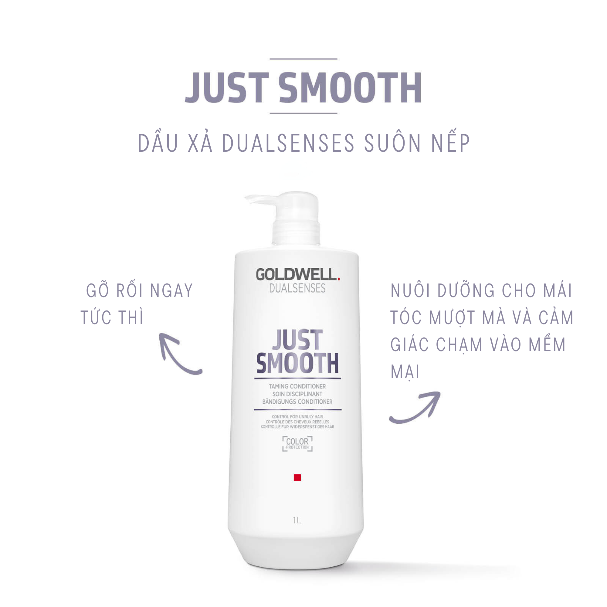 Dầu Xả Dưỡng Tóc Mềm Mượt Goldwell Just Smooth Giảm Bông Xù, Xơ Rối, Kiểm Soát Tóc Tức Thì - Phù hợp với tình trạng tóc: + Bông xù, xơ, rối + Tóc đang gặp