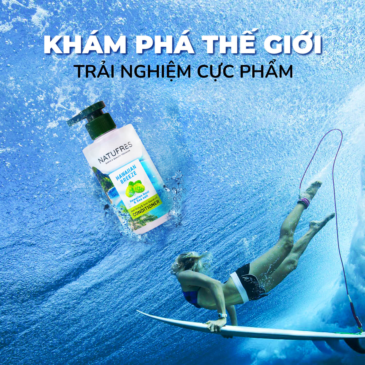 ✨Dầu xả NATUFRÈS Hawaiian Breeze Muối Biển và Trái Nhàu - Điều tiết bã nhờn & chống bết dính, tóc mềm mượt 250ml