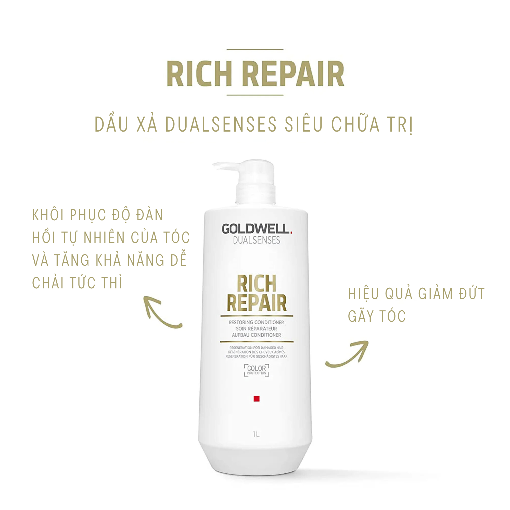 Dầu Xả Goldwell Rich Repair Phục Hồi Tóc Hư Tổn, Chẻ Ngọn Từ Sâu Bên Trong - Phù hợp với tình trạng tóc: + Tóc hư tổn trung bình tới hư tổn nặng + Tóc