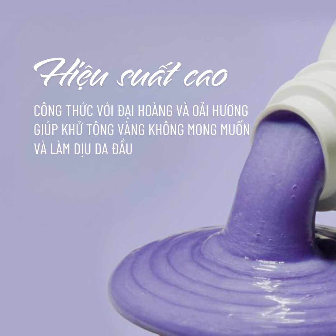- Kiểm soát sắc vàng không mong muốn trên tóc tẩy, tóc nâng sáng, vàng tự nhiên và tóc bạc chỉ sau một lần gội