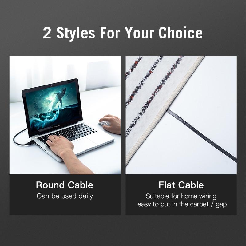 Thông tin chi tiết sản phẩm Dây cáp mạng Lan Cat6 Dẹt - Tròn Gigabit tốc độ cao Thương hiệu: Vention Đầu nối chuẩn 8P8C 10Gbps