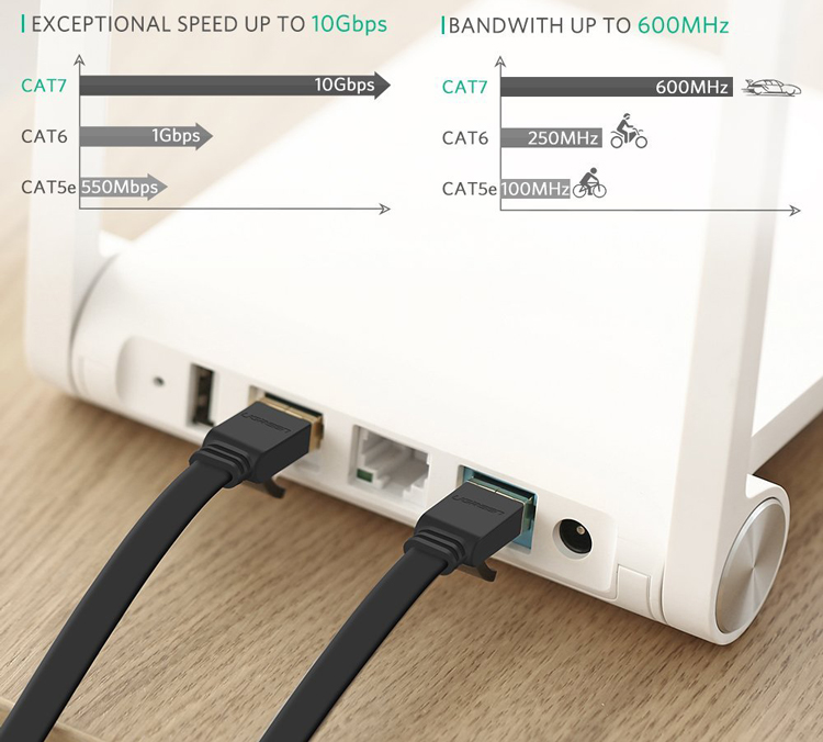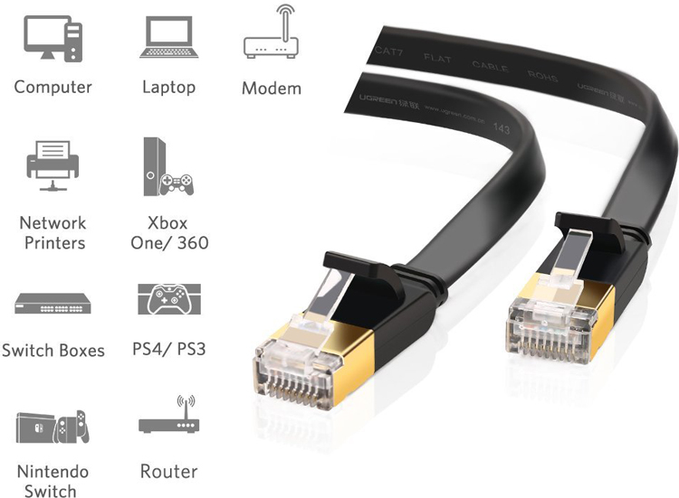 Cáp mạng CAT7 được Ugreen thiết kế với kiểu dáng mỏng dẹp, cực kì thuận tiện cho việc di dây.