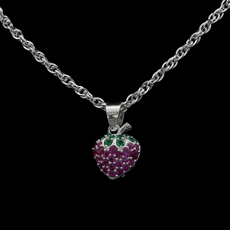 ✨Dây Chuyền Trẻ Em Bạc Hiểu Minh DTE050 Quả Dâu Tây
