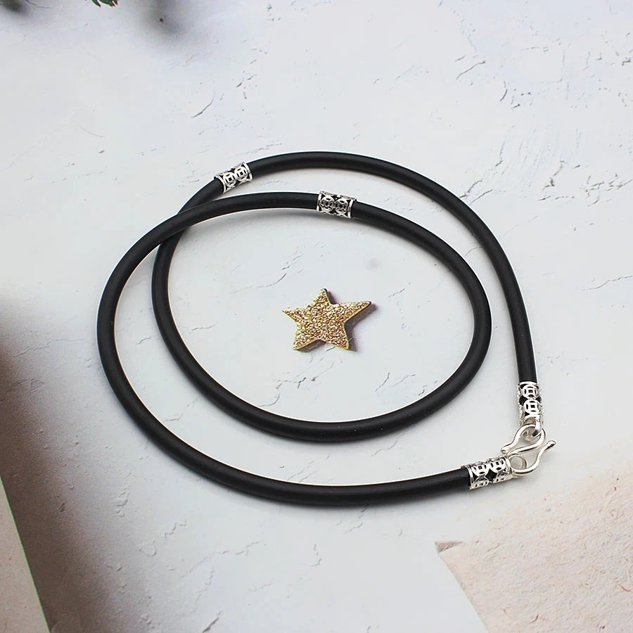 Dây Chuyền Vòng Cổ Nam Cao Su Bọc Bạc 925 Chính Hãng Bạc Hiểu Minh DCS043 #bạc #diamond #trang_sức