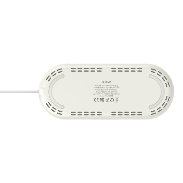 MÔ TẢ SẢN PHẨM: Đế Sạc Không Dây 3in1 EA157 chính hãng Devia - Thiết kế siêu mỏng, sang trọng, màu sắc trắng phù hợp với tông màu của Apple - Chế độ sạc không