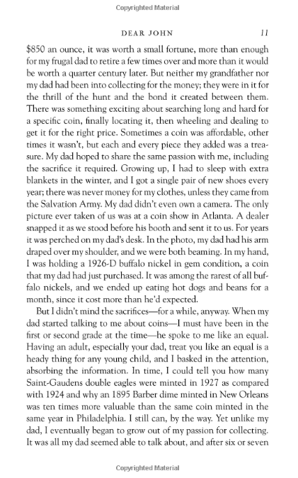 An angry rebel, John dropped out of school and enlisted in the Army, not knowing what else to do with his life--until he meets the girl of his dreams, Savannah. Their mutual attraction quickly grows into the kind of love that leaves Savannah waiting for John to finish his tour of duty, and John wanting to settle down with the woman who captured his heart. But 9/11 changes everything. John feels it is his duty to re-enlist. And sadly, the long separation finds Savannah falling in love with someone else. "Dear John," the letter read...and with those two words, a heart was broken and two lives were changed forever. Returning home, John must come to grips with the fact that Savannah, now married, is still his true love--and face the hardest decision of his life.