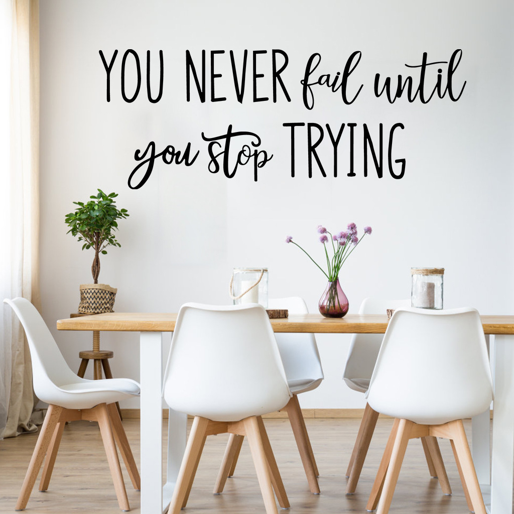 Decal dán tường tiếng anh tạo động lực ý nghĩa với câu Quote : You never fail until you stop trying. Decal cao cấp dễ dàng dán ngay tại nhà !