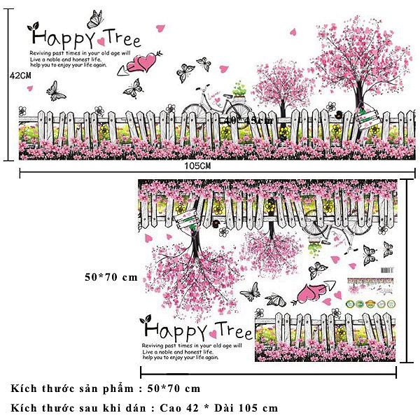 Đặc điểm kỹ thuật :Decal trang trí dán tường hàng rào hoa bướm lãng mạn XL7080