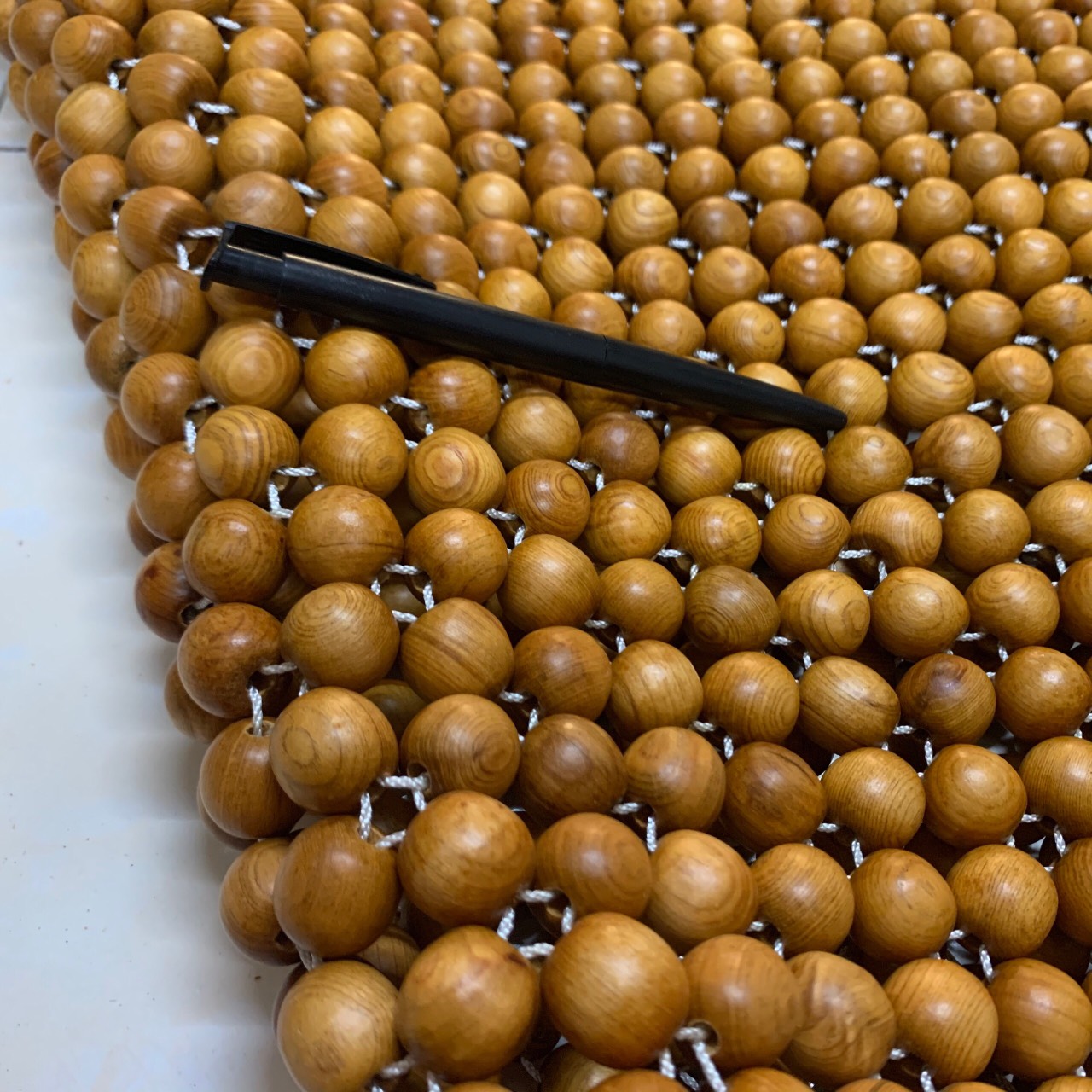 -Bước 4 : Đan hạt thủ công nằng tay cho ra thành phẩm đệm ghế ô tô , đệm ghế văn phòng , chiếu .
