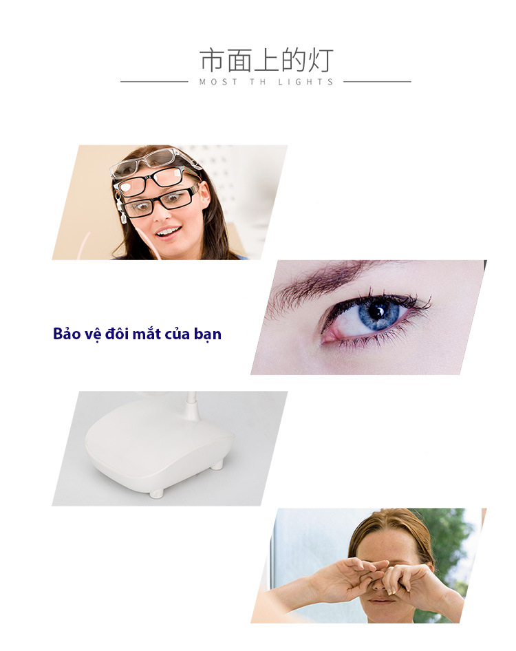 Mô Tả Sản Phẩm Khách hàng lưu ý : Đèn tích điện mới có chỗ cắm sạc và 3 chế độ, còn đèn cắm dây, dây sẽ liền đèn.. Đèn Led kẹp bàn chống cận