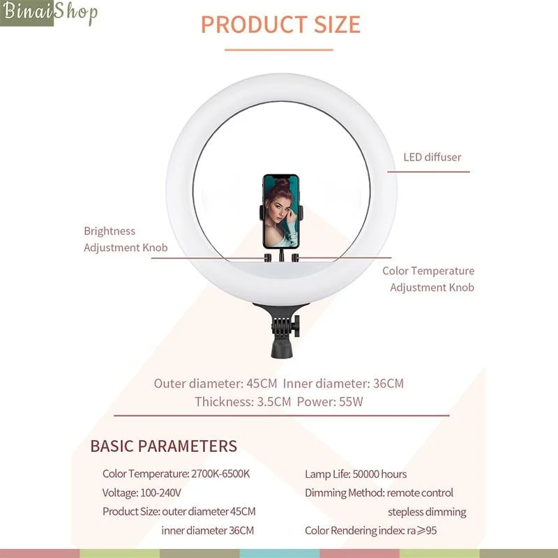 ✨Đèn LED Ring RL21 / RL18 - Đèn Led Dành Cho Chụp Ảnh , Quay Phim, Phát Trực Tiếp, Nhiệt Độ Màu 2700K-6500K, Công Suất Tối Đa 36W- 65W - Hàng nhập khẩu