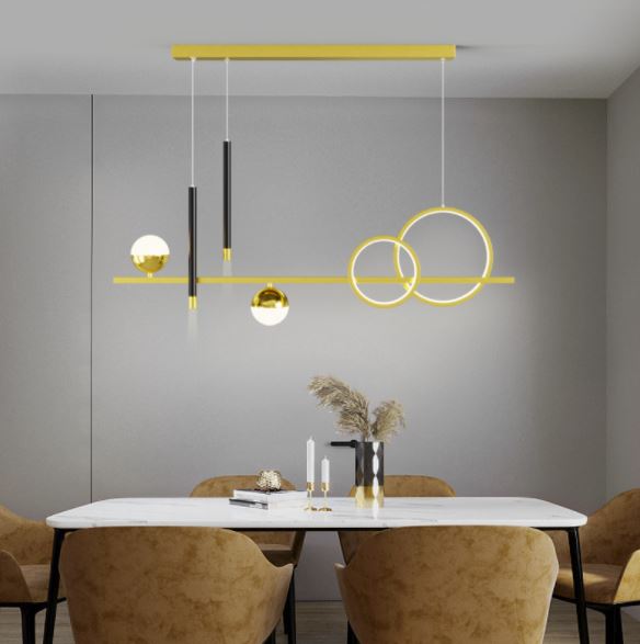 Thông qua việc trang trí nội thất của không gian có thể biết phần nào tính cách và con mắt nghệ thuật của chủ nhà. Bởi vậy những vật dụng trang trí nội thất luôn được người dùng lựa chọn cực kỳ cẩn thận. Đặc biệt là thiết bị chiếu sáng lại càng được chú trọng vì đây chính là sản phẩm cần thiết trong mọi không gian. Mỗi loại đèn lại có những ưu điểm và thiết kế khác nhau đem đến cho người dùng những cảm nhận khác biệt. Đèn thả hiện đại là một trong số các loại đèn độc đáo và mới lạ giúp không gian ngôi nhà bạn trở nên tươi mới hơn. THÔNG TIN SẢN PHẨM: Màu sắc: Đen, Vàng Thân đèn làm bằng sắt cứng và quy trình sơn tinh tế, bền và sáng màu, chống ăn mòn, chống gỉ và chống trầy xước. Đế bắt trần chịu lực bền và chắc chắn, chống gió và chống rỉ sắt, khả năng chịu lực mạnh. Vòng kim loại dày làm bằng phần cứng chất lượng cao được sơn ở nhiệt độ cao màu sắc tươi sáng. Chụp đèn silicon có độ truyền ánh sáng cao, truyền ánh sáng đồng đều, ánh sáng dịu, dễ lau chùi. Chíp led tích hợp không nhấp nháy, tuổi thọ cao bảo vệ sức khẻo và đôi mắt của gia đình bạn. Kích thước sản phẩm: 100x70(cm) Ứng dụng: phòng ăn, phòng khách, khách sạn, Công nghệ chiếu sáng hiện đại của bóng đèn led giúp cho đèn bàn ăn đẹp cung cấp ánh sáng đều màu, ổn định trong khoảng diện tích từ 10-35 m2 mà không bị chập chờn, chớp nháy gây ảnh hưởng đến thị giác người nhìn. Hơn nữa, chúng còn làm nổi bật lên vẻ đẹp của các món ăn từ đó thu hút các thành viên trong gia đình quây quần lại thưởng thức. Không chỉ đóng vai trò cung cấp ánh sáng, Đèn thả trang trí còn là vật dụng làm nổi bật lên phong cách nội thất của không gian. Tại mỗi không gian, các bạn cũng nên biết cách bày trí sao cho đạt hiệu quả thẩm mỹ cao nhất. Đèn thả giúp mang lại những điều vui vẻ, hạnh phúc trong căn hộ của bạn. Chính vì thế nhiều gia đình lựa chọn lắp đèn thả trong phòng ngủ vừa tạo không gian ấm áp, lãng mạn. Vừa giúp tăng sự gắn kết trong hạnh phúc gia đình.