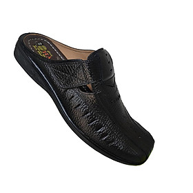 Dép Da Nam  - Lịch Lãm & Thoải Mái Mỗi Ngày - Chất liệu cao cấp: Sử dụng da tổng hợp chất lượng, mềm mại, bền bỉ theo thời gian, mang lại cảm giác êm ái và thoáng khí cho bàn chân. - Thiết kế sang trọng: Tông màu đen lịch lãm, kết hợp với đường chỉ may tinh tế và logo kim loại nổi bật – tôn lên vẻ nam tính, trưởng thành. - Đế chống trượt: Đế EVA siêu nhẹ, độ đàn hồi tốt, kết hợp vân đế tăng độ ma sát – an toàn khi di chuyển trên nhiều bề mặt. - Form ôm chân: Thiết kế bản quai ngang rộng, ôm gọn bàn chân nhưng không gây bí bách, dễ xỏ vào – thích hợp cho người trung niên và người lớn tuổi. - Ứng dụng đa năng: Phù hợp sử dụng trong nhà, đi dạo phố, đến văn phòng hoặc các dịp gặp gỡ thân mật. Lựa chọn tuyệt vời cho quý ông yêu thích sự thoải mái, đơn giản nhưng vẫn giữ được nét tinh tế trong từng bước chân.