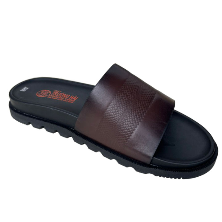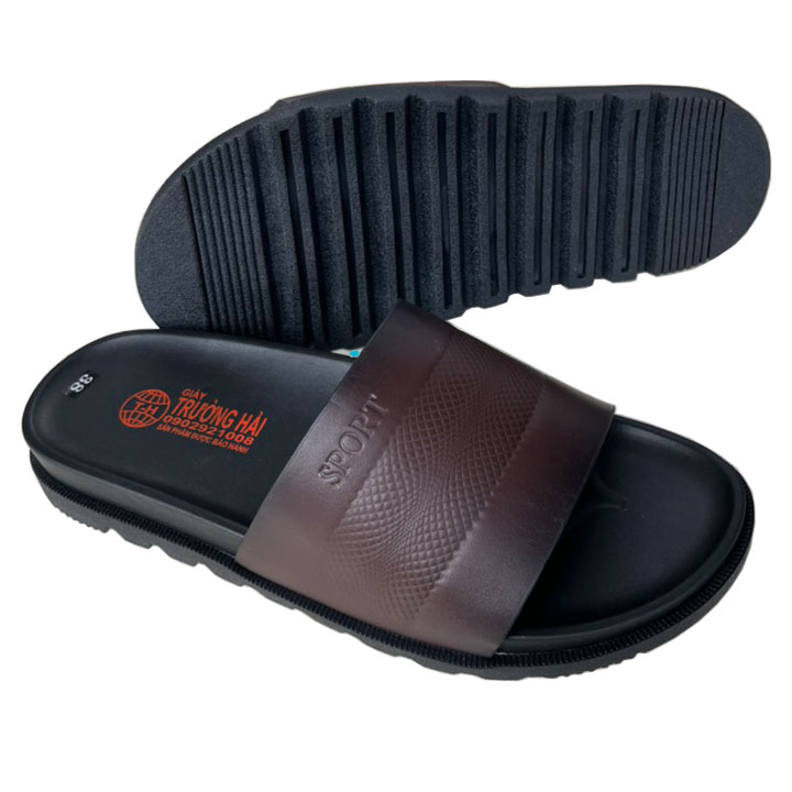 ✨Dép da nam quai ngang thời trang da bò thật màu nâu chính hãng Trường Hải QN157