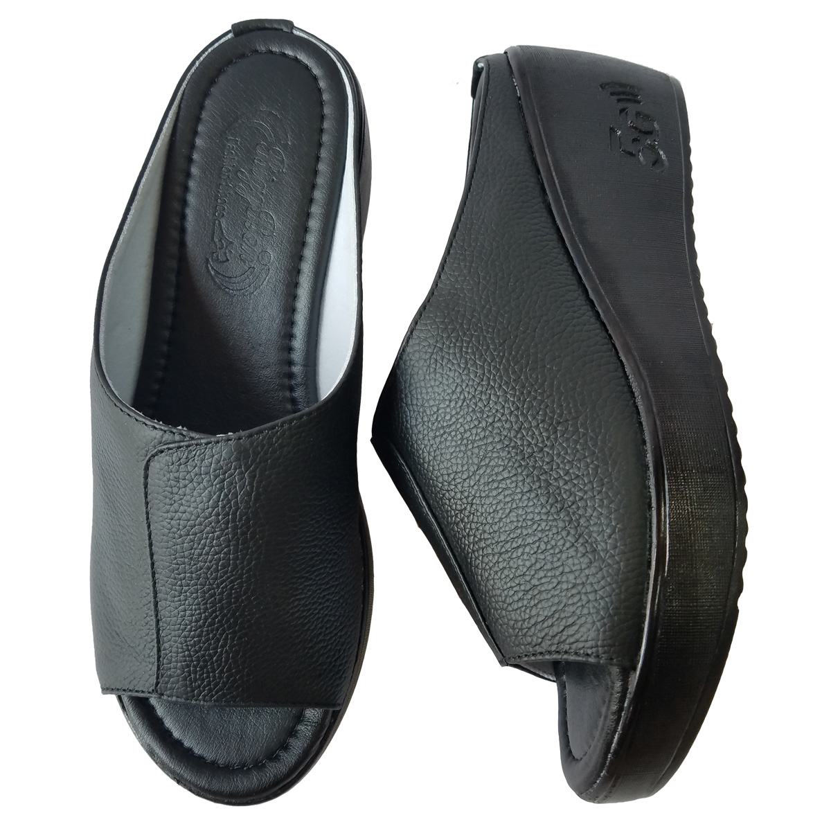 Dép nữ đế xuồng 5cm da bò thật