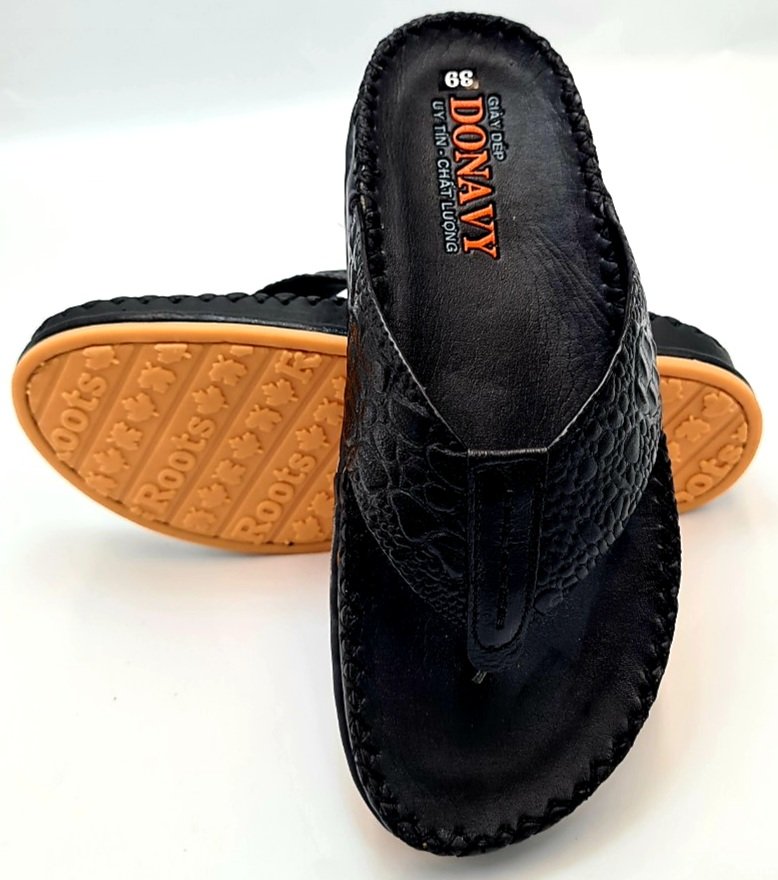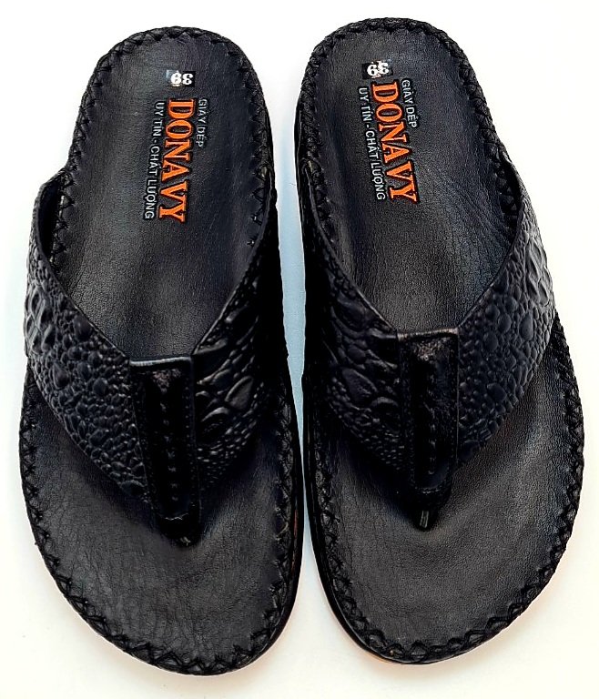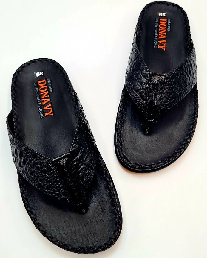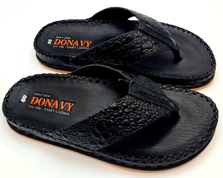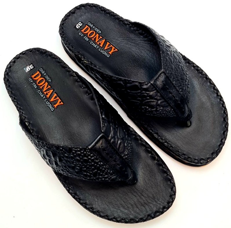 DÉP KẸP NAM DA BÒ THẬT 100% DONAVY CAO CẤP ,IN VÂN CÁ SẤU NỔI BẬT DOKBChất liệu: Da bò thật 100% da bò tự nhiênĐế cao su tốt đi siêu êm, chống chơn, trượt.Da được may vào đế cẩn thận, đẹp bao đi nước...