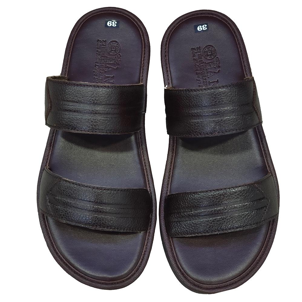 - Màu : đen ,nâu - Chất liệu bên ngoài: quai dép da bò cao cấp tuyệt đối không bong tróc hay nổ da càng đi lớp da càng mềm mại bóng đẹp - Xuất